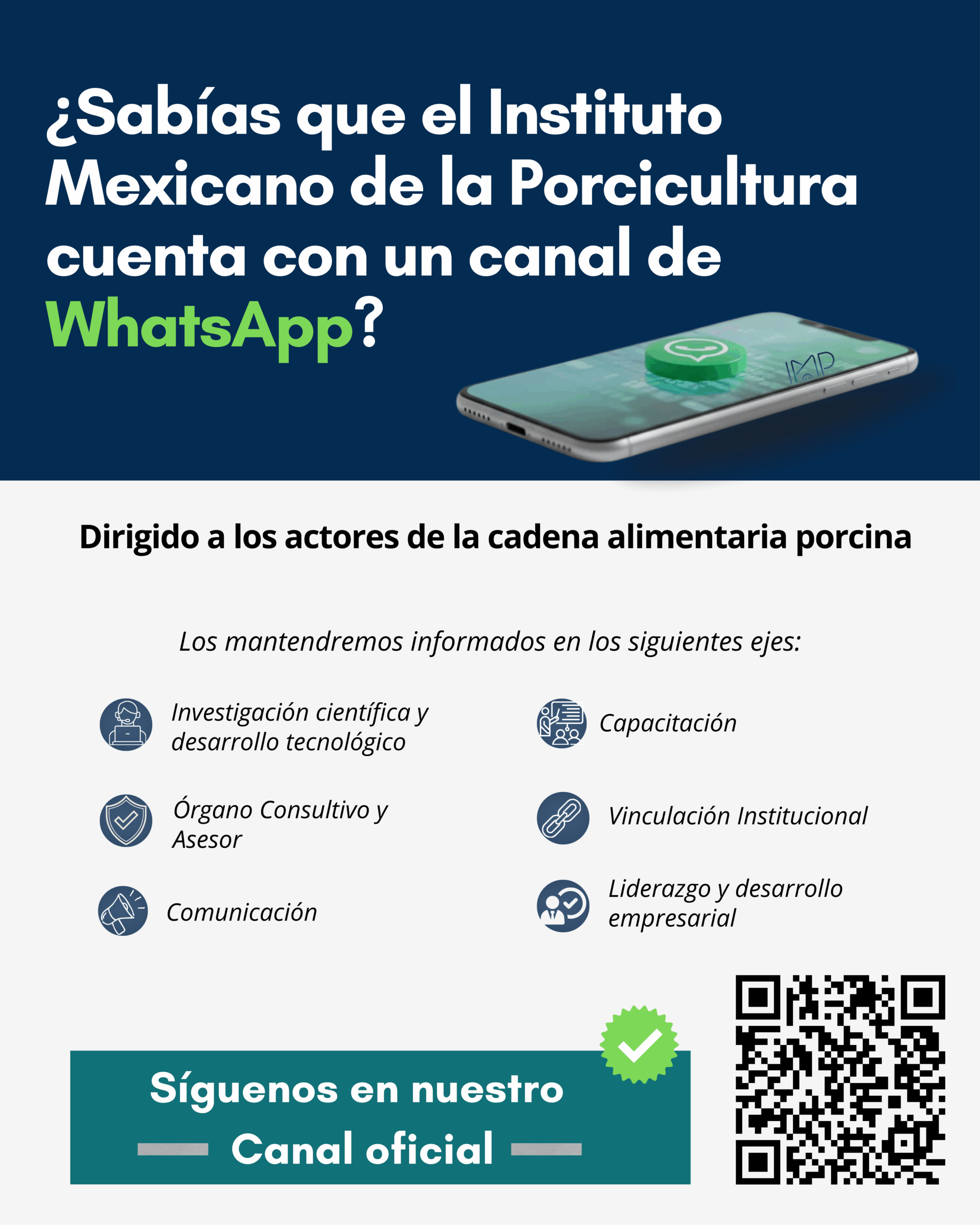 Con el objetivo de fortalecer la comunicación y estar más cerca de los actores del sector porcícola, el Instituto Mexicano de la Porcicultura (IMP) pone a disposición su canal oficial de WhatsApp, una nueva herramienta de comunicación directa, ágil y accesible. Este canal está dirigido a todas y todos los integrantes de la cadena alimentaria...Leer más
